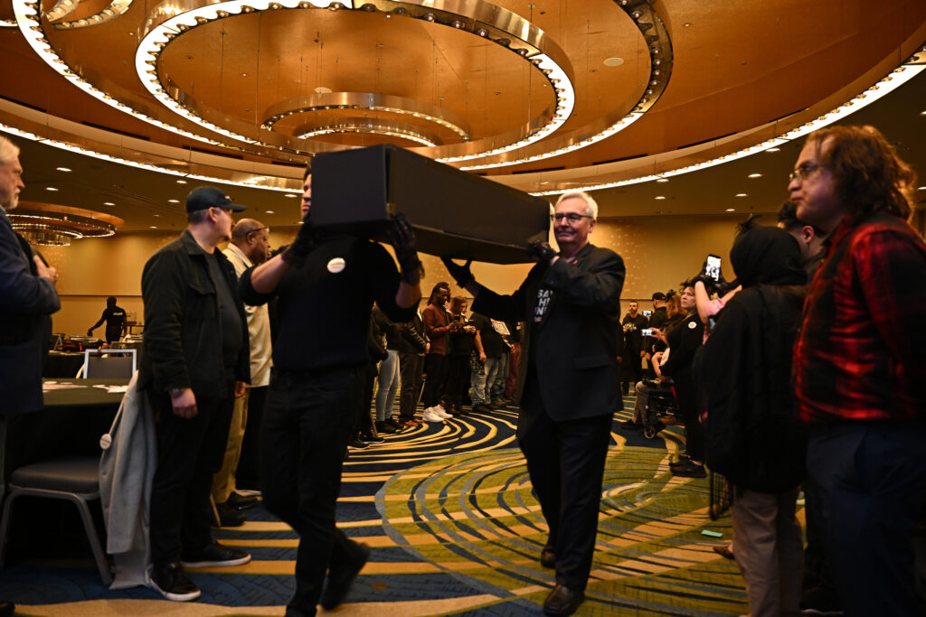 Organized by the Save HIV Funding Campaign and held at Renaissance Arlington Capital View Hotel (host hotel for this year’s AIDSWatch conference), the demonstration used the imagery of a memorial service to warn that decades of progress in the fight against HIV could be reversed if critical prevention and treatment programs continue to face funding threats and policy instability.
